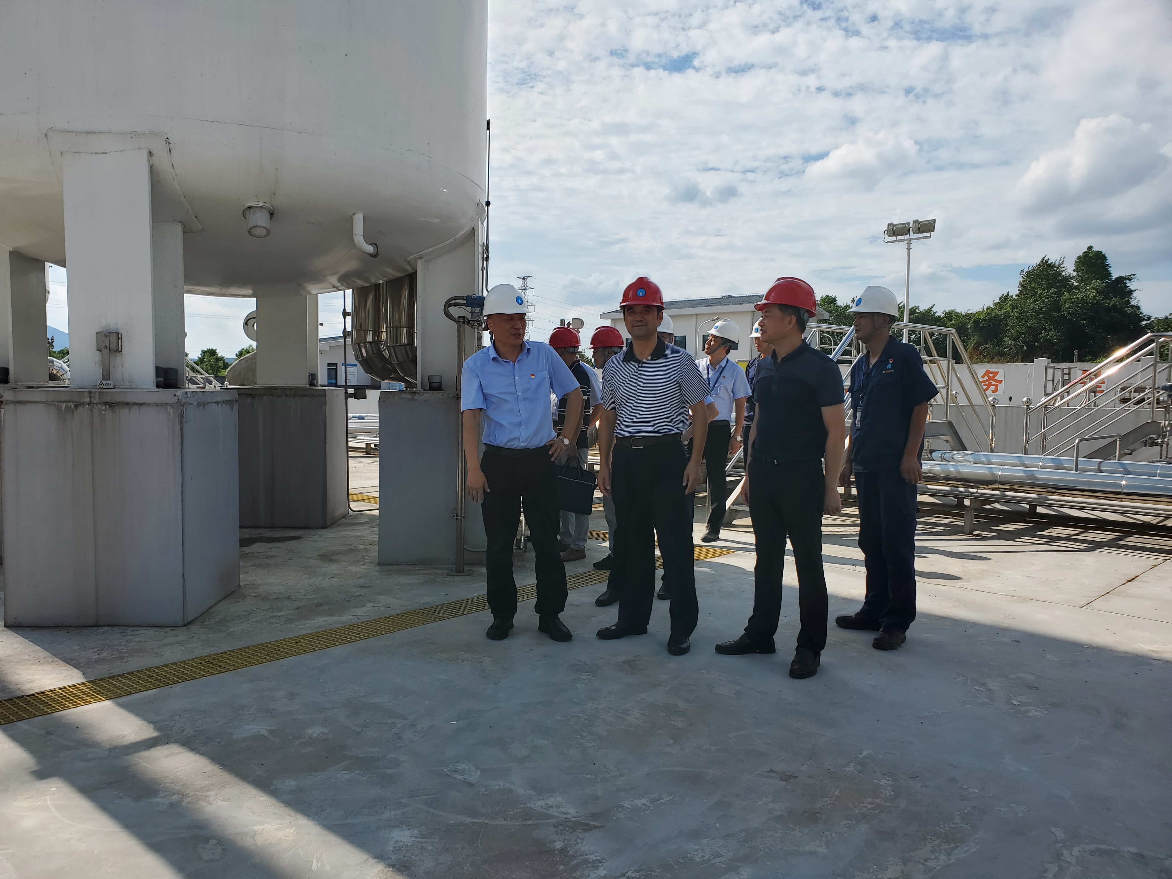 8月13日下午,市市場(chǎng)監(jiān)管局黨組書記、局長(zhǎng)戴春益,黨組成員、副局長(zhǎng)王書明一行來到安慶港華集賢關(guān)加氣站、LNG應(yīng)急調(diào)峰站等處檢查指導(dǎo),安慶港華黨委書記、董事長(zhǎng)何族興,副總經(jīng)理裴曉斌陪同。