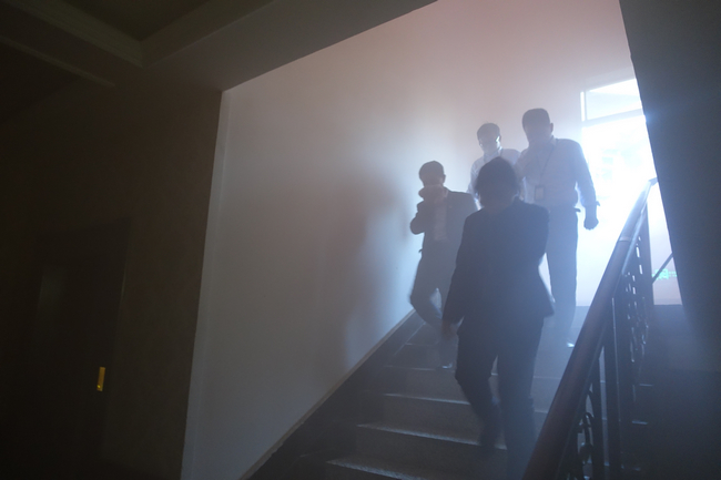 下午15:30分,隨著警報(bào)響起,各樓層疏散組長迅速行動(dòng),及時(shí)引導(dǎo)各層員工沿逃生疏散路線有序撤離。全體員工依照預(yù)案要求,用濕毛巾捂住口鼻快速前進(jìn),僅用了5分鐘即安全撤離到公司大樓警戒線外的安全地帶。隨即,各樓層疏散組長清點(diǎn)人數(shù)后向演練總指揮報(bào)告疏散情況,整個(gè)應(yīng)急疏散過程,秩序良好,反應(yīng)迅速。