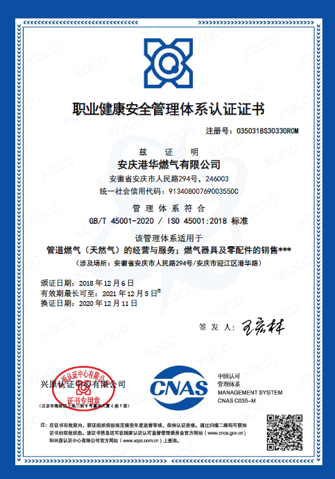 日前,安慶港華順利通過了“質(zhì)量、環(huán)境、職業(yè)健康安全管理(GB/T19001、GB/T14001、GB/T45001)”三體系認證審核。