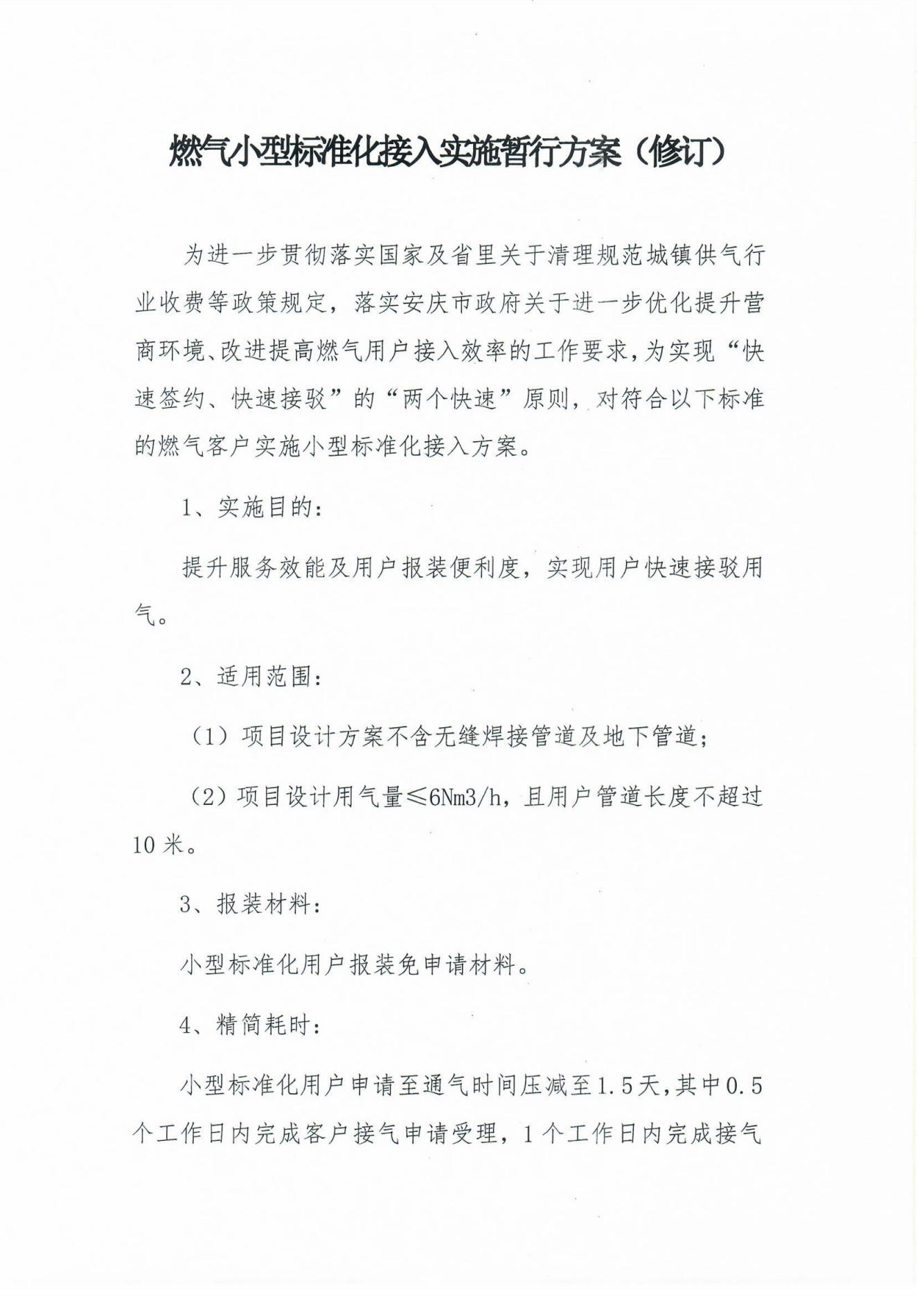 燃?xì)庑⌒蜆?biāo)準(zhǔn)化接入實施暫行方案(修訂)