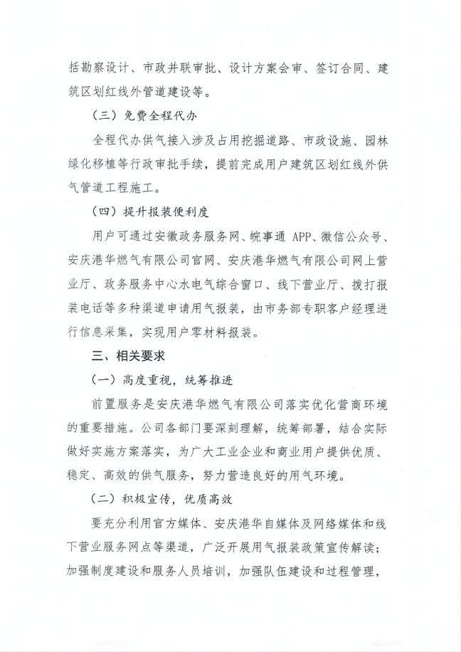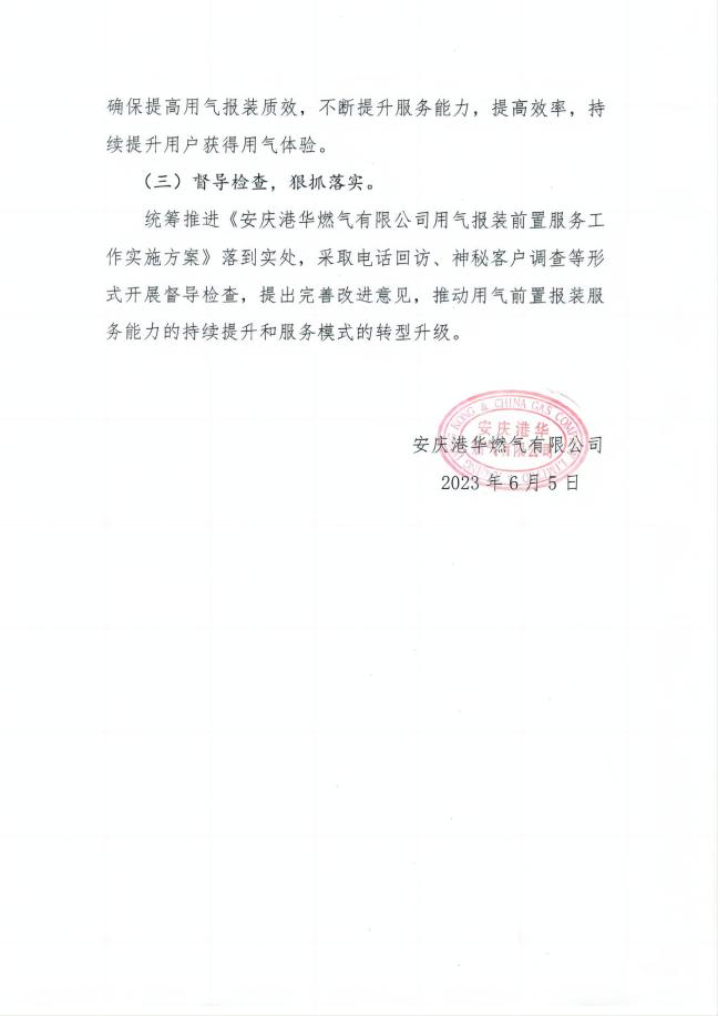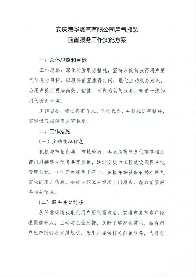 安慶港華燃氣有限公司用氣報裝 前置服務(wù)工作實施方案