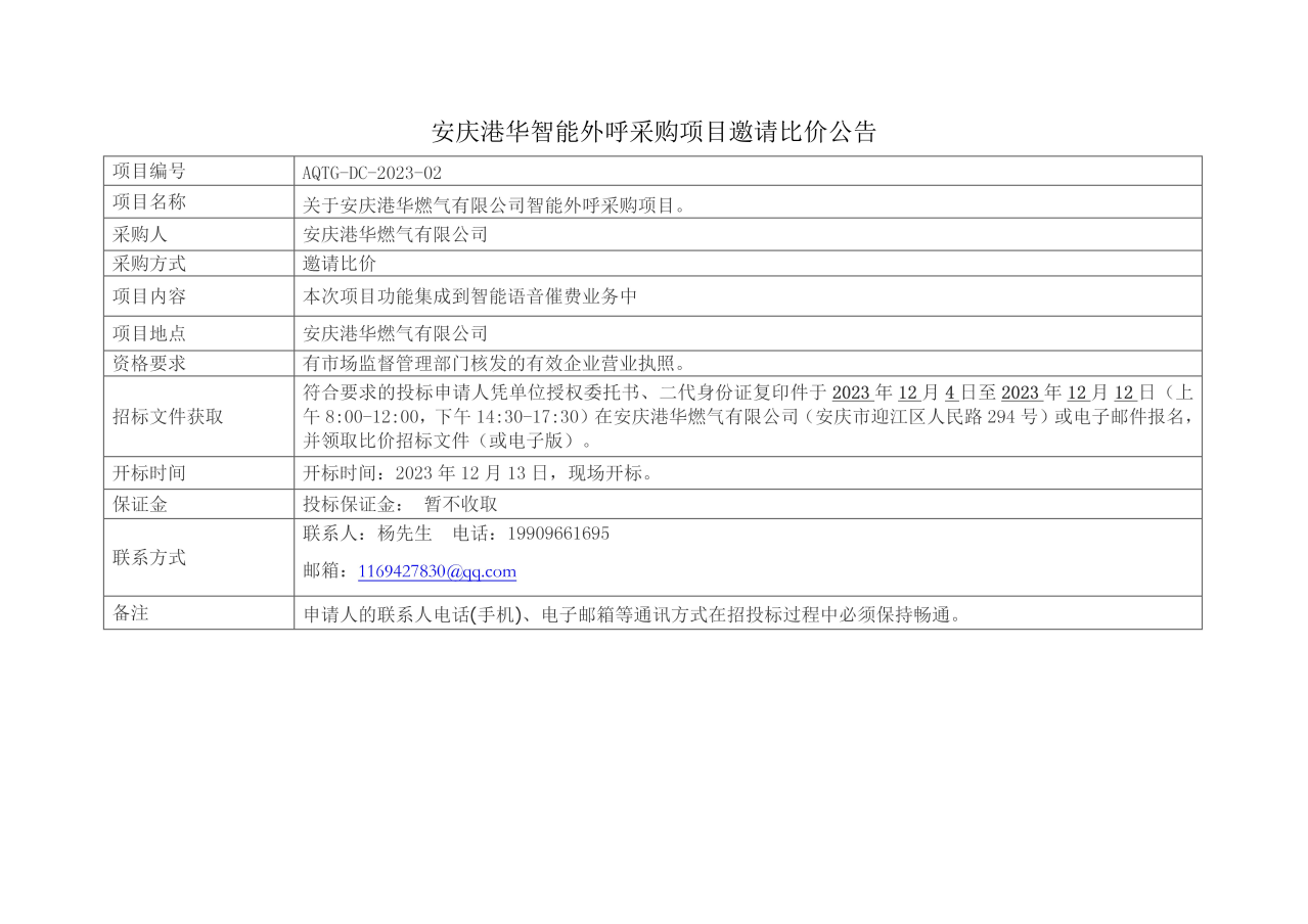 安慶港華燃?xì)庥邢薰局悄芡夂舨少?gòu)項(xiàng)目邀請(qǐng)比價(jià)公告
