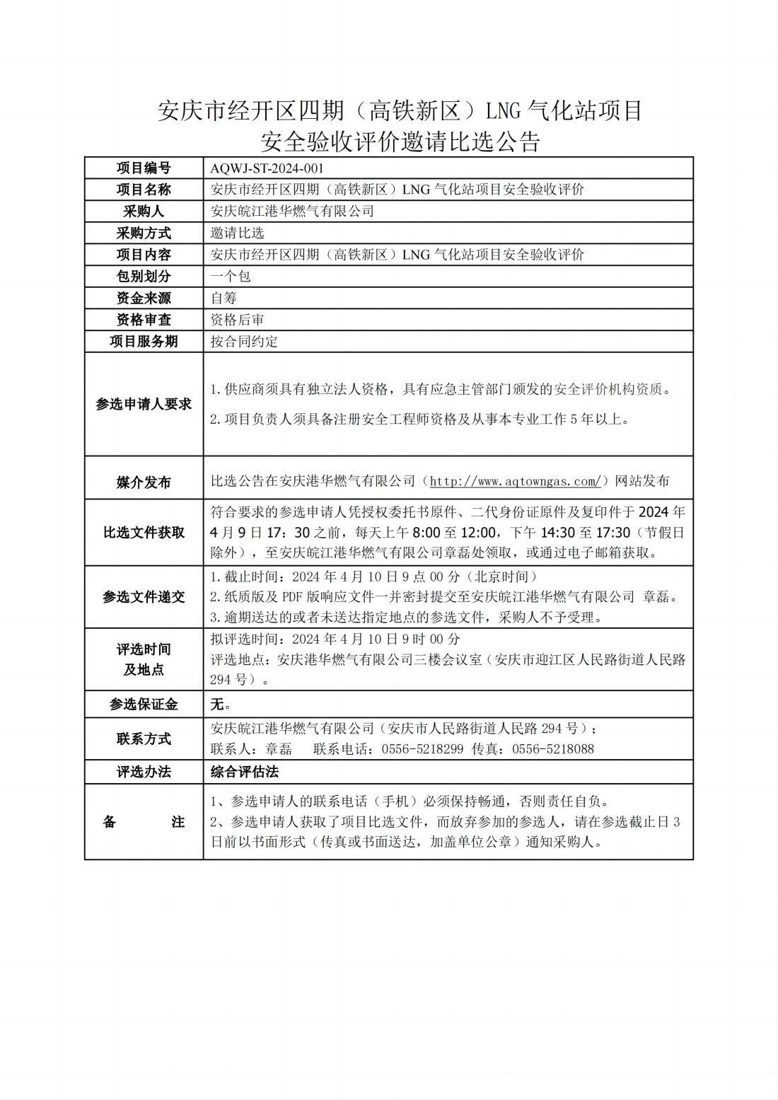 安慶市經(jīng)開區(qū)四期(高鐵新區(qū))LNG 氣化站項(xiàng)目安全驗(yàn)收評(píng)價(jià)邀請(qǐng)比選公告