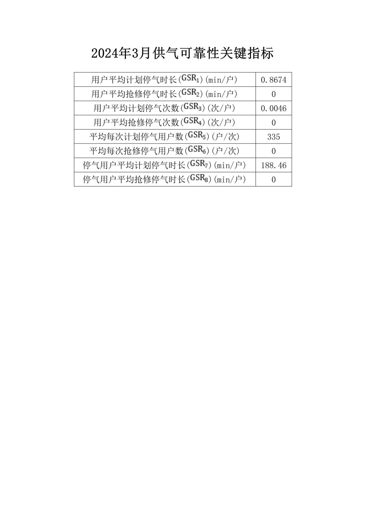 2024年3月供氣可靠性關(guān)鍵指標(biāo)