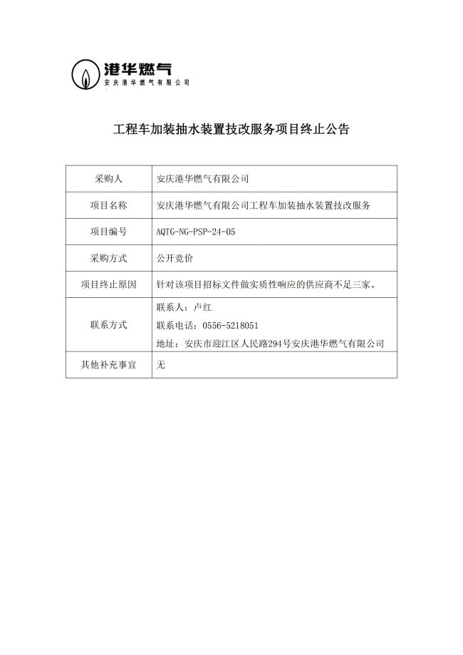 工程車(chē)加裝抽水裝置技改服務(wù)項(xiàng)目終止公告