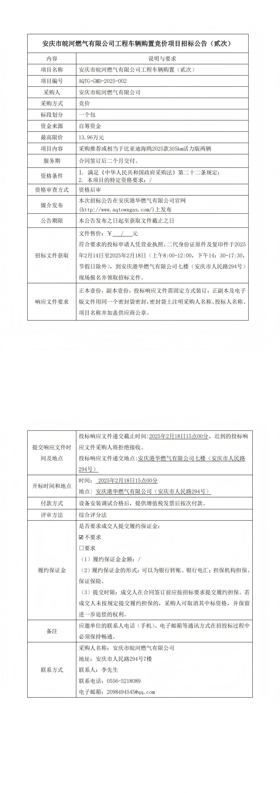 安慶市皖河燃?xì)庥邢薰竟こ誊囕v購(gòu)置競(jìng)價(jià)項(xiàng)目招標(biāo)公告(貳次)