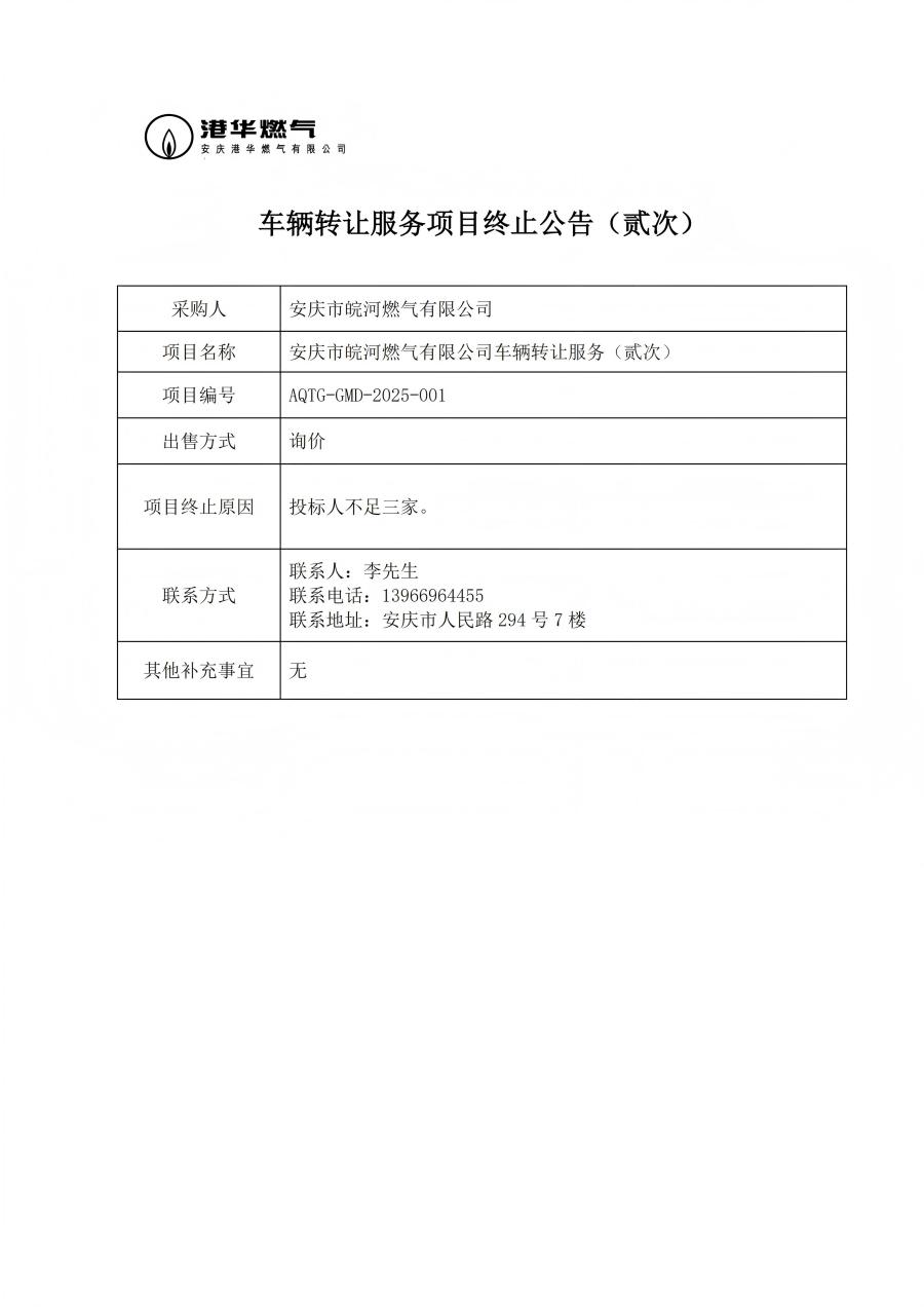 下一篇 : 安慶市皖河燃氣有限公司車輛轉讓服務