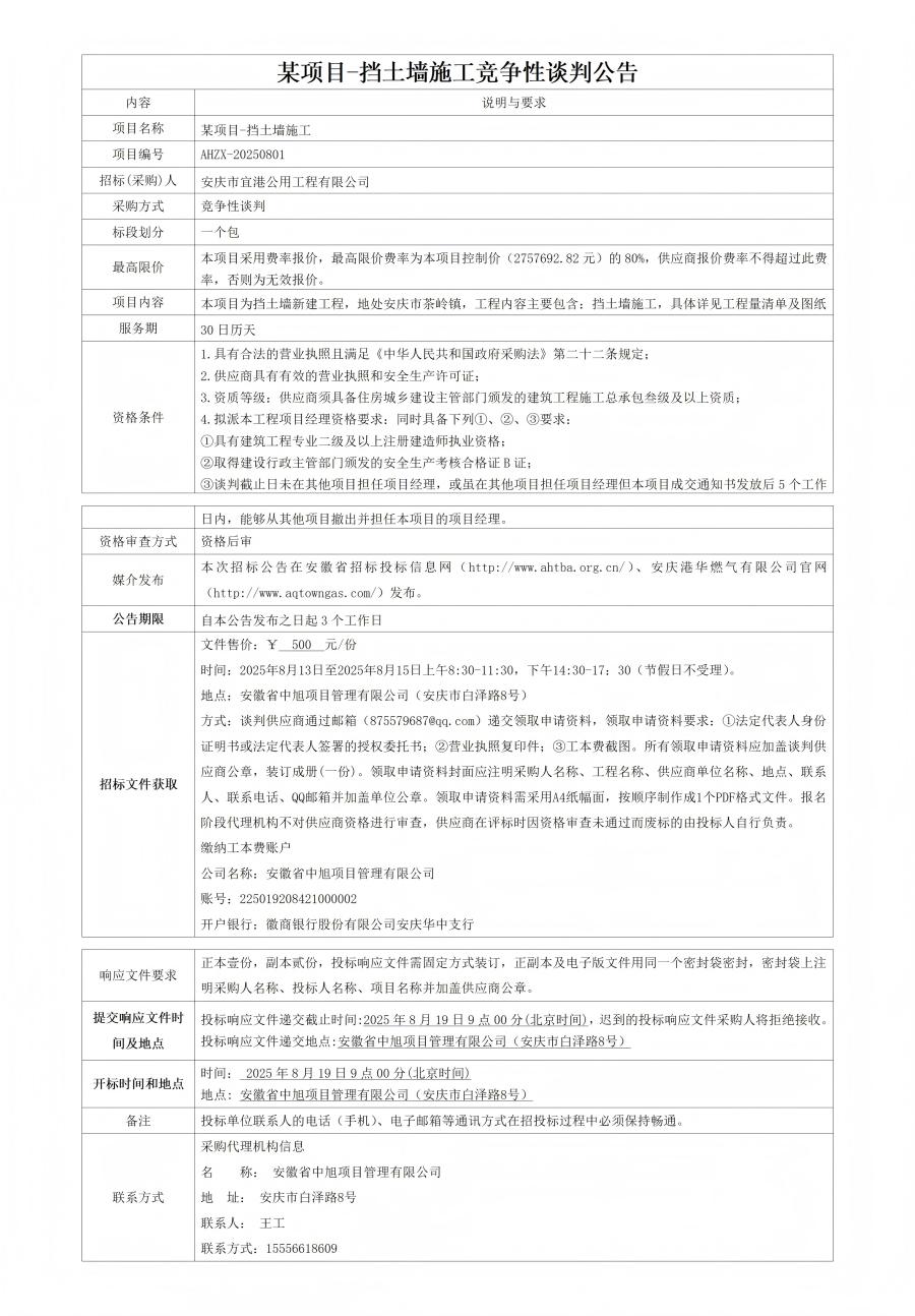 某項目-擋土墻施工競爭性談判公告