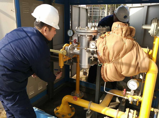 圖為管網(wǎng)運行人員正在檢查燃氣調(diào)壓設施
