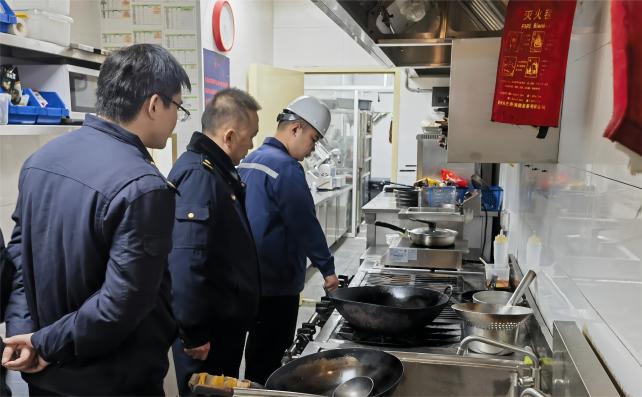 工作組對(duì)區(qū)內(nèi)商業(yè)綜合體的燃?xì)夤芫€及商戶廚房用氣情況進(jìn)行全面排查,著重檢查了燃?xì)鈭?bào)警器、煙道等可能存在隱患處,對(duì)發(fā)現(xiàn)的廚房雜物覆蓋燃?xì)庖牍?、使用無熄火保護(hù)裝置燃?xì)饩叩入[患,立即下達(dá)隱患整改單,督促商戶及時(shí)整改,并現(xiàn)場(chǎng)開展燃?xì)獍踩麄鹘逃占叭細(xì)馐褂冒踩R(shí)及相關(guān)急救措施,切實(shí)提高餐飲從業(yè)者的燃?xì)獍踩庾R(shí)。